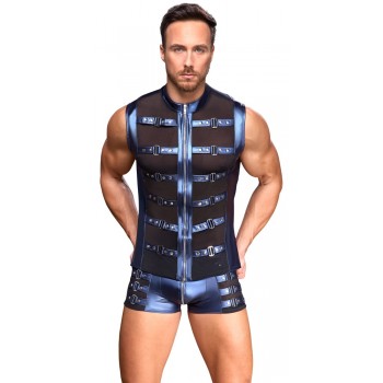 A cool mix of materials in a strap style! The tight, emphasising shirt from NEK has a small stand-up..